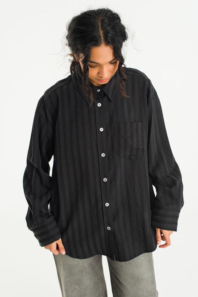 Our lightweight shirt is designed for a boxy silhouette. Featuring contrasting buttons, a patch pocket and subtle stripes all over. A UK size 6-8 can expect a loose fit, while a 12-14 will wear it slightly more fitted. One Size: Length: 72cm, Across Width (Bust): 59cm, Sleeve: 44cm. 65% Lyocell, 30% Viscose, 5% Elastane.